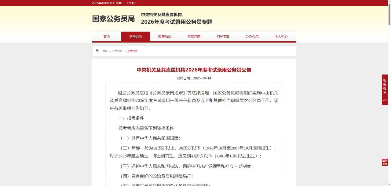 2026年国考公告正式发布!放宽至38岁!