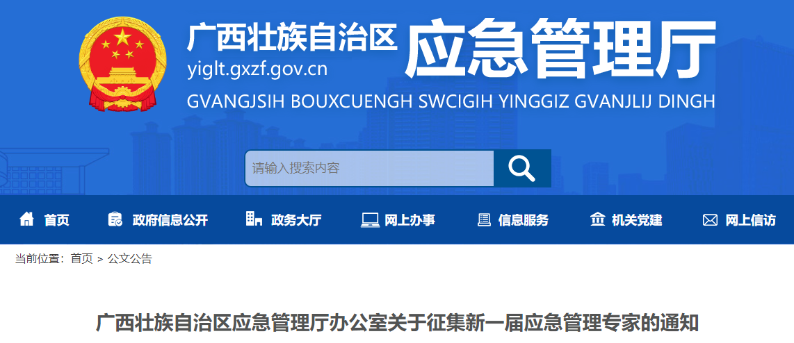 近日,广西壮族自治区应急管理厅发布了《关于征集新一届应急管理专家的通知》,这次是继第一届应急管