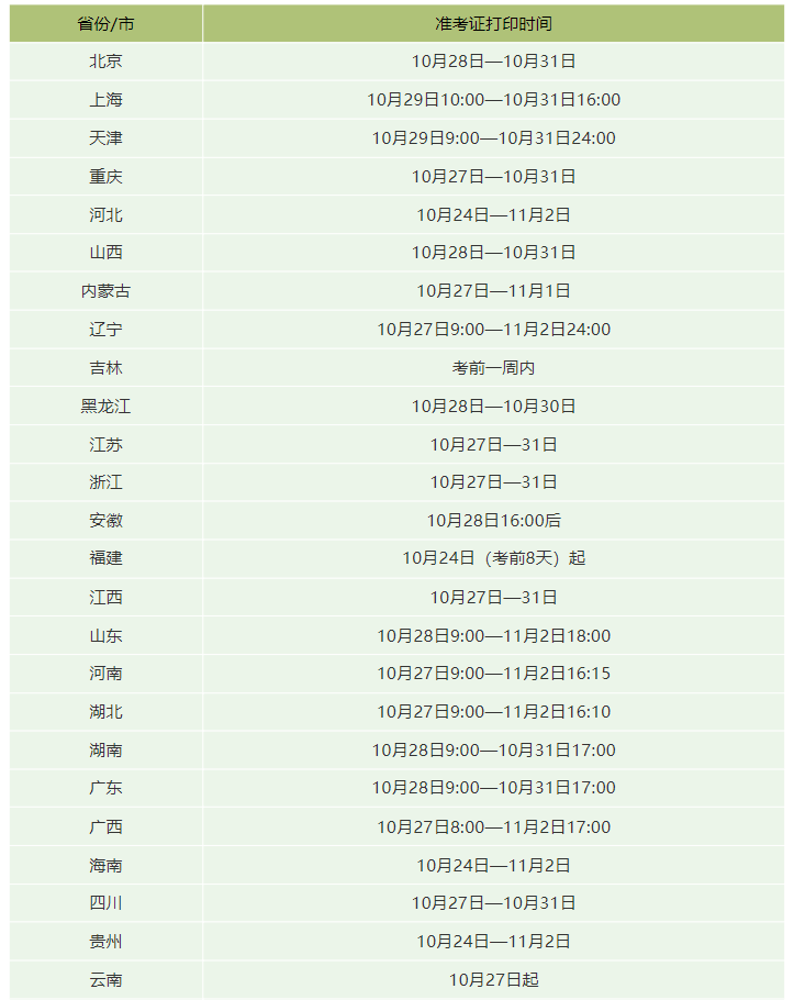 一、12地准考证打印时间安排 10月27日起打印!25年12地中级经济师准考证打印通道已开启