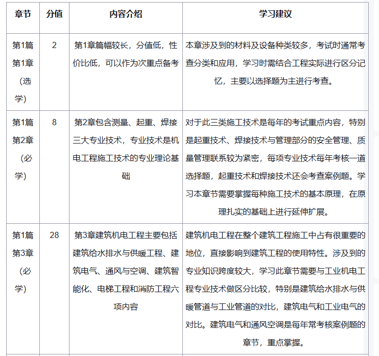 2026二级建造师《机电工程管理与实务》科目共16章内容,第2章-第16章均为必学内容,仅第1