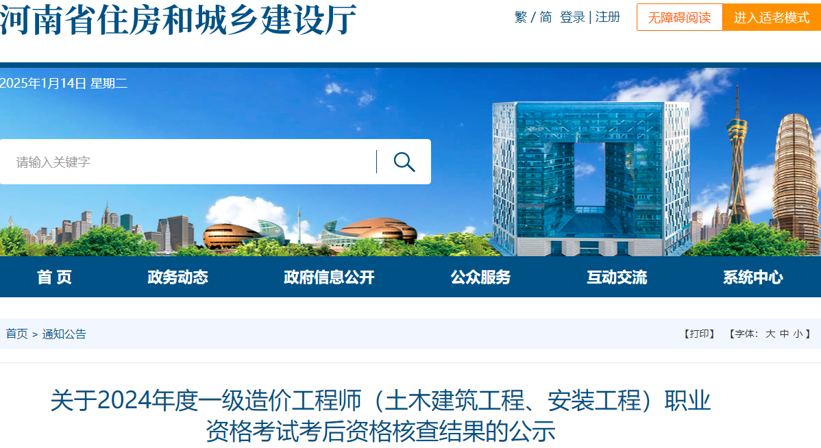 2025年1月13日,河南省住房和城乡建设厅发布了《关于2024年度一级造价工程师(土木建筑工