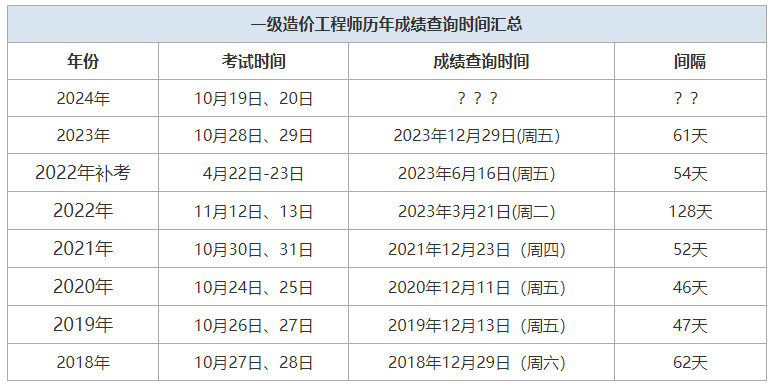 根据各地报考公告信息可知,2024年一级造价师考试成绩将在2025年1月上旬公布,应试人员可到