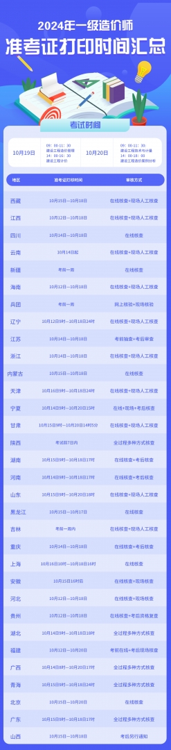 2024年各省一级造价师准考证的打印时间因地区而异,但一般集中在考前一周左右开始,并持续到考试