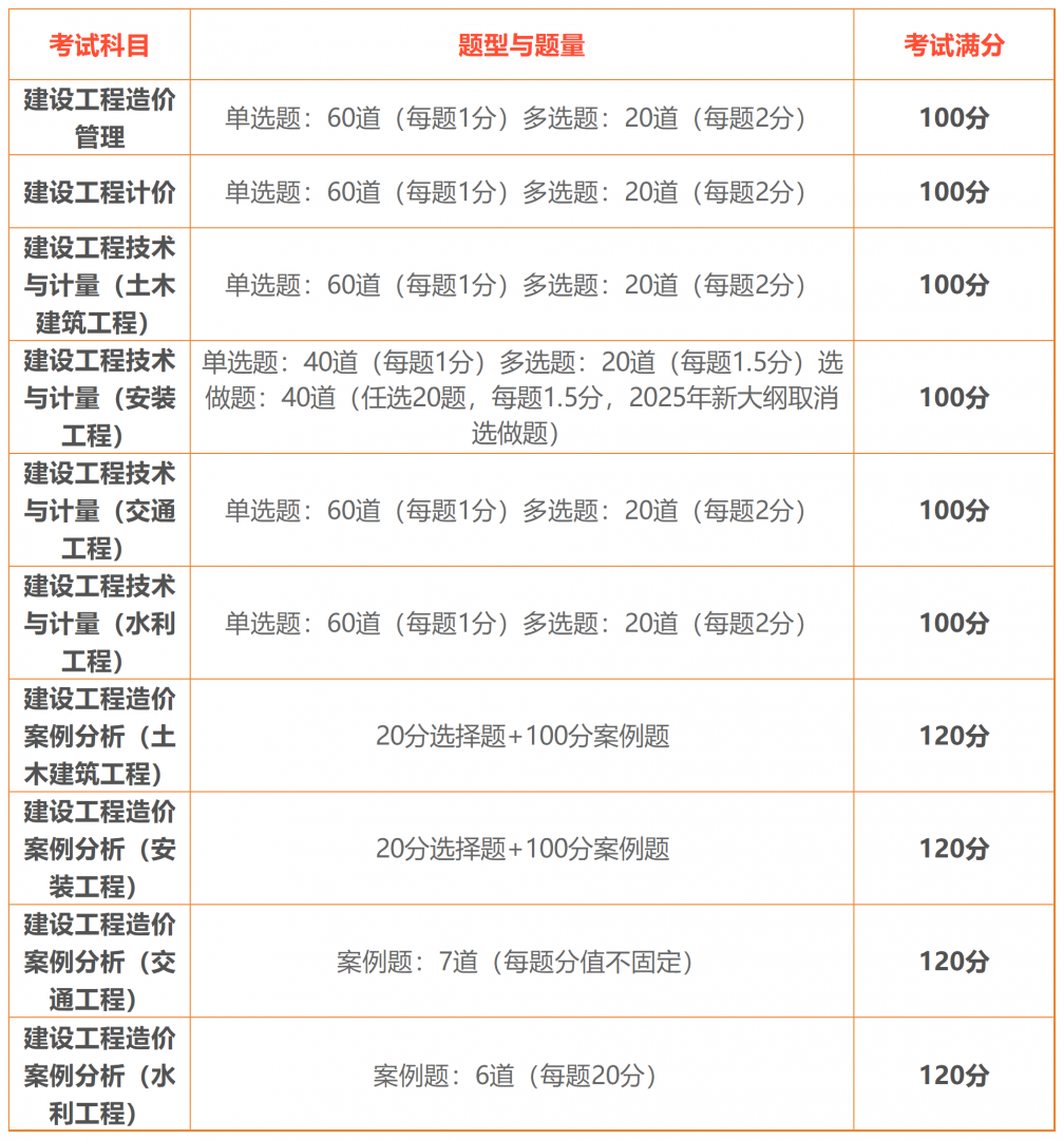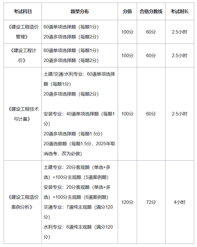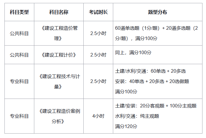 2025年一级造价师各科目考试时长和题型分布如何?考试形式是