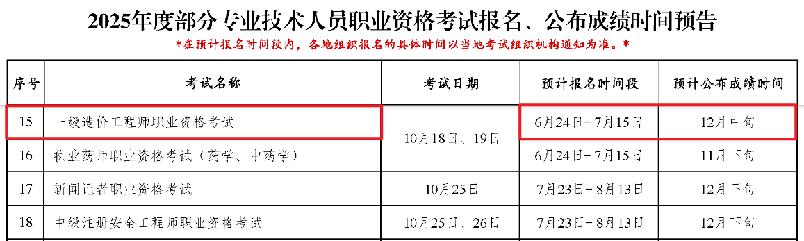 2025年一级造价工程师考试报名时间为6月24日-7月15日,各省具体报名时间详见报名公告。报